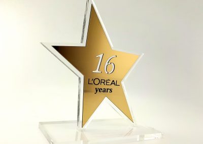 Antras pagal populiarumą yra graviravimas ant organinio stiklo, kuris labai panašus į graviravimą ant paprasto stiklo. Paveikta vieta tampa matine, šerkšno spalvos, tik labiau įgilinama. Graviruojant organinį stiklą, didžiausias kontrastas gaunamas ant pusiau skaidraus stiklo. Organinis stiklas (PMMA) – tai viena iš plačiausiai naudojamų medžiagų reklamos gamyboje. Jis pasižymi puikiomis optinėmis savybėmis, jį galima lankstyti ir termiškai formuoti, sulaiko UV spindulius, tinka naudoti patalpų viduje ir lauke. Graviruojant lazeriu organinį stiklą (akrilą), išgaunamas matinis užrašas arba vaizdas. Norint išryškinti graviravimą ar pakeisti spalvą, paviršių galima įtrinti akrilo dažais.